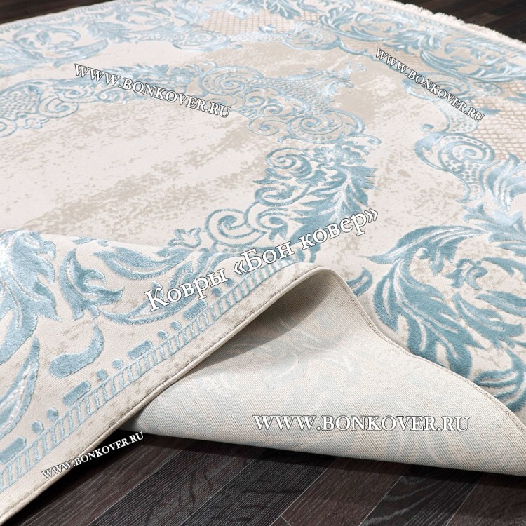 Турецкий Ковер для гостиной Белый с Голубым Арт 29862 станет идеальным преображением вашей комнаты, подчеркивая высокий статус владельца.